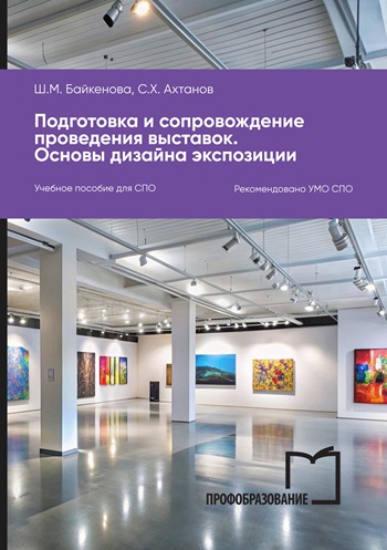 Байкенова, Ш. М. Подготовка и сопровождение проведения выставок. Основы дизайна экспозиции : учебное пособие для СПО / Ш. М. Байкенова, С. Х. Ахтанов. — Саратов : Профобразование, 2026. — 174 c. — ISBN 978-5-4488-2882-9. — Текст : электронный // Цифровой образовательный ресурс IPR SMART : [сайт]. — URL: https://www.iprbookshop.ru/158468.html (дата обращения: 16.02.2026). — Режим доступа: для авторизир. пользователей