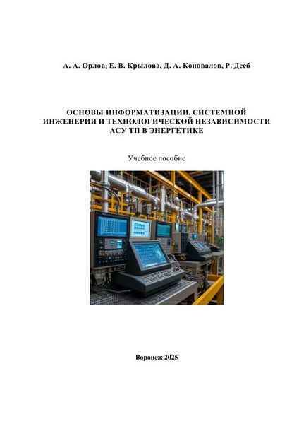 Основы информатизации, системной инженерии и технологической независимости АСУ ТП в энергетике : учебное пособие / А. А. Орлов, Е. В. Крылова, Д. А. Коновалов, Р. Дееб. — Воронеж : Воронежский государственный технический университет, ЭБС АСВ, 2025. — 72 c. — ISBN 978-5-7731-1266-2. — Текст : электронный // Цифровой образовательный ресурс IPR SMART : [сайт]. — URL: https://www.iprbookshop.ru/158548.html (дата обращения: 13.02.2026). — Режим доступа: для авторизир. пользователей