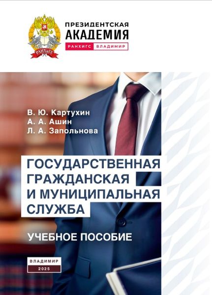 Картухин, В. Ю. Государственная гражданская и муниципальная служба : учебное пособие / В. Ю. Картухин, А. А. Ашин, Л. А. Запольнова. — Владимир : Владимирский филиал РАНХиГС, 2025. — 169 c. — ISBN 978-5-907789-31-9. — Текст : электронный // Цифровой образовательный ресурс IPR SMART : [сайт]. — URL: https://www.iprbookshop.ru/158582.html (дата обращения: 24.02.2026). — Режим доступа: для авторизир. пользователей