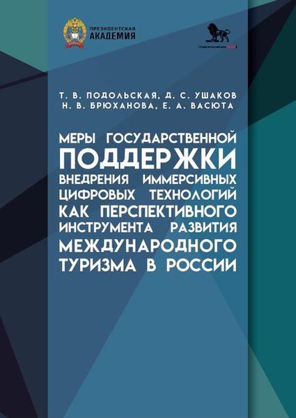 Меры государственной поддержки внедрения иммерсивных цифровых технологий как перспективного инструмента развития международного туризма в России : монография / Т. В. Подольская, Д. С. Ушаков, Н. В. Брюханова, Е. А. Васюта. — Москва : Дело, 2025. — 202 c. — ISBN 978-5-85006-648-2. — Текст : электронный // Цифровой образовательный ресурс IPR SMART : [сайт]. — URL: https://www.iprbookshop.ru/158595.html (дата обращения: 24.02.2026). — Режим доступа: для авторизир. пользователей