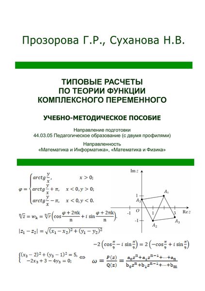 Прозорова, Г. Р. Типовые расчёты по теории функции комплексного переменного : учебно-методическое пособие: направление подготовки 44.03.05 Педагогическое образование (с двумя профилями), направленность «Математика и Информатика», «Математика и Физика» / Г. Р. Прозорова, Н. В. Суханова. — Сургут : Сургутский государственный педагогический университет, 2025. — 118 c. — Текст : электронный // Цифровой образовательный ресурс IPR SMART : [сайт]. — URL: https://www.iprbookshop.ru/159368.html (дата обращения: 11.03.2026). — Режим доступа: для авторизир. пользователей