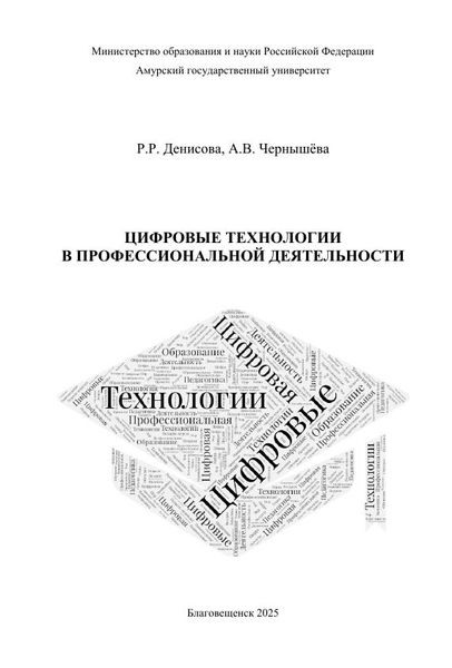 Денисова, Р. Р. Цифровые технологии в профессиональной деятельности : учебное пособие / Р. Р. Денисова, А. В. Чернышёва. — Благовещенск : Амурский государственный университет, 2025. — 135 c. — ISBN 978-5-93493-442-3. — Текст : электронный // Цифровой образовательный ресурс IPR SMART : [сайт]. — URL: https://www.iprbookshop.ru/159629.html (дата обращения: 19.03.2026). — Режим доступа: для авторизир. пользователей
