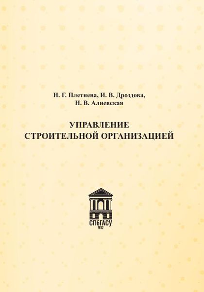 Плетнева, Н. Г. Управление строительной организацией : учебное пособие / Н. Г. Плетнева, И. В. Дроздова, Н. В. Алиевская. — Санкт-Петербург : Санкт-Петербургский государственный архитектурно-строительный университет, ЭБС АСВ, 2025. — 204 c. — ISBN 978-5-9227-1467-9. — Текст : электронный // Цифровой образовательный ресурс IPR SMART : [сайт]. — URL: https://www.iprbookshop.ru/160045.html (дата обращения: 01.04.2026). — Режим доступа: для авторизир. пользователей