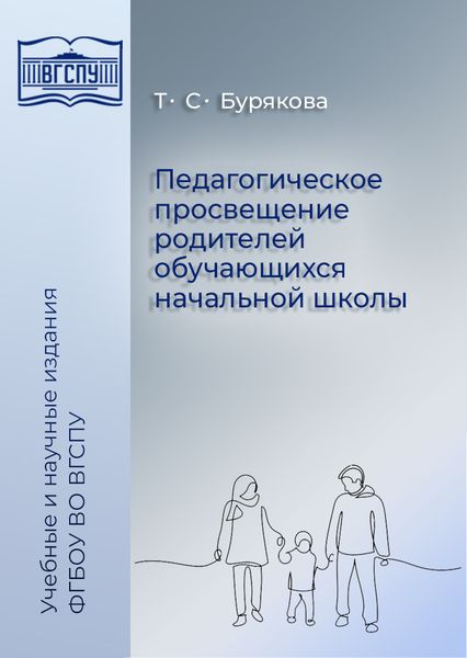 Бурякова, Т. С. Педагогическое просвещение родителей обучающихся начальной школы : учебно-методическое пособие / Т. С. Бурякова. — Волгоград : Волгоградский государственный социально-педагогический университет, «Перемена», 2026. — 86 c. — ISBN 978-5-9935-0484-1. — Текст : электронный // Цифровой образовательный ресурс IPR SMART : [сайт]. — URL: https://www.iprbookshop.ru/160342.html (дата обращения: 13.04.2026). — Режим доступа: для авторизир. пользователей