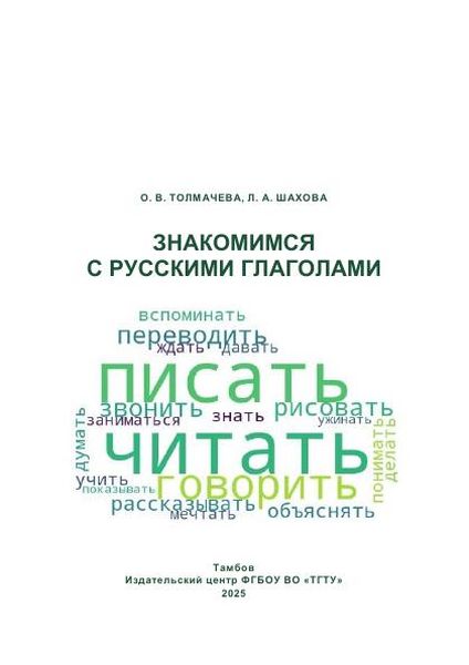 Толмачева, О. В. Знакомимся с русскими глаголами : учебное пособие / О. В. Толмачева, Л. А. Шахова. — Тамбов : Тамбовский государственный технический университет, ЭБС АСВ, 2025. — 180 c. — ISBN 978-5-8265-2950-8. — Текст : электронный // Цифровой образовательный ресурс IPR SMART : [сайт]. — URL: https://www.iprbookshop.ru/160494.html (дата обращения: 15.04.2026). — Режим доступа: для авторизир. пользователей