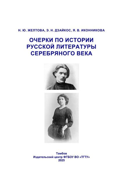 Желтова, Н. Ю. Очерки по истории русской литературы серебряного века : учебное пособие / Н. Ю. Желтова, Э. Н. Дзайкос, Я. В. Иконникова. — Тамбов : Тамбовский государственный технический университет, ЭБС АСВ, 2025. — 80 c. — ISBN 978-5-8265-2959-1. — Текст : электронный // Цифровой образовательный ресурс IPR SMART : [сайт]. — URL: https://www.iprbookshop.ru/160497.html (дата обращения: 15.04.2026). — Режим доступа: для авторизир. пользователей