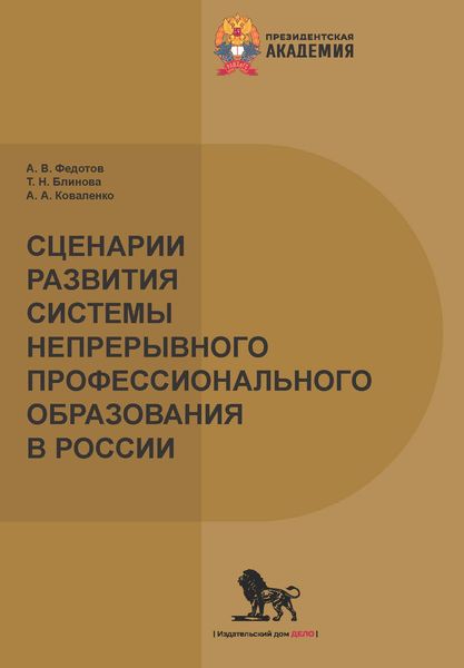 Федотов, А. В. Сценарии развития системы непрерывного профессионального образования в России / А. В. Федотов, Т. Н. Блинова, А. А. Коваленко. — Москва : Дело, 2026. — 86 c. — ISBN 978-5-85006-702-1. — Текст : электронный // Цифровой образовательный ресурс IPR SMART : [сайт]. — URL: https://www.iprbookshop.ru/160698.html (дата обращения: 23.04.2026). — Режим доступа: для авторизир. пользователей