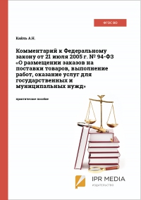 Кайль, А. Н. Комментарий к Федеральному закону от 21 июля 2005 г. № 94-ФЗ «О размещении заказов на поставки товаров, выполнение работ, оказание услуг для государственных и муниципальных нужд» / А. Н. Кайль. — Саратов : Ай Пи Эр Медиа, 2009. — 382 c. — Текст : электронный // Цифровой образовательный ресурс IPR SMART : [сайт]. — URL: https://www.iprbookshop.ru/1634.html (дата обращения: 30.11.2025). — Режим доступа: для авторизир. пользователей