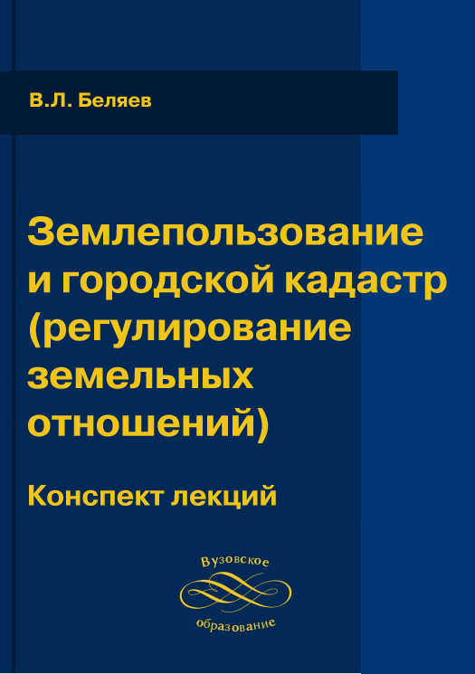 Беляев, В. Л. Землепользование и городской кадастр (регулирование земельных отношений) : конспект лекций / В. Л. Беляев. — Москва : Московский государственный строительный университет, ЭБС АСВ, 2010. — 112 c. — Текст : электронный // Цифровой образовательный ресурс IPR SMART : [сайт]. — URL: https://www.iprbookshop.ru/16393.html (дата обращения: 04.07.2025). — Режим доступа: для авторизир. пользователей