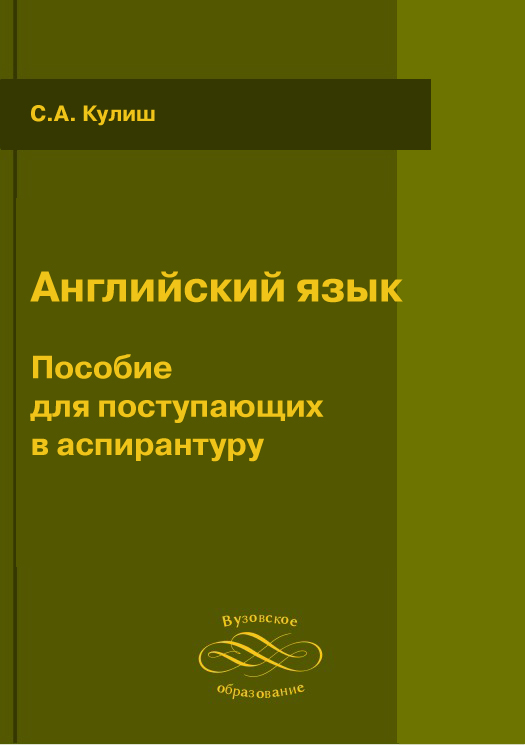 Кулиш, С. А. Английский язык : пособие для поступающих в аспирантуру / С. А. Кулиш ; под редакцией А. Е. Беспалов. — Москва : Московский государственный строительный университет, ЭБС АСВ, 2011. — 112 c. — ISBN 978-5-7264-0524-7. — Текст : электронный // Цифровой образовательный ресурс IPR SMART : [сайт]. — URL: https://www.iprbookshop.ru/16401.html (дата обращения: 22.10.2025). — Режим доступа: для авторизир. пользователей