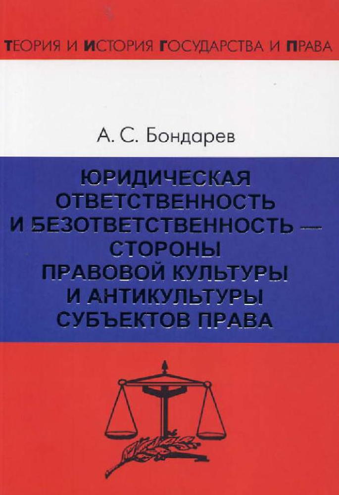 Бондарев, А. С. Юридическая ответственность и безответственность — стороны правовой культуры и антикультуры субъектов права / А. С. Бондарев. — Санкт-Петербург : Юридический центр Пресс, 2008. — 187 c. — ISBN 978-5-94201-553-4. — Текст : электронный // Цифровой образовательный ресурс IPR SMART : [сайт]. — URL: https://www.iprbookshop.ru/18060.html (дата обращения: 05.05.2022). — Режим доступа: для авторизир. пользователей