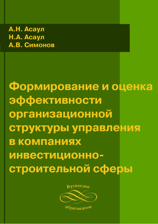 Асаул, А. Н. Формирование и оценка эффективности организационной структуры управления в компаниях инвестиционно-строительной сферы / А. Н. Асаул, Н. А. Асаул, А. В. Симонов ; под редакцией А. Н. Асаул. — Санкт-Петербург : Институт проблем экономического возрождения, Санкт-Петербургский государственный архитектурно-строительный университет, 2009. — 224 c. — ISBN 978-5-9227-0143-3. — Текст : электронный // Цифровой образовательный ресурс IPR SMART : [сайт]. — URL: https://www.iprbookshop.ru/18225.html (дата обращения: 05.05.2022). — Режим доступа: для авторизир. пользователей