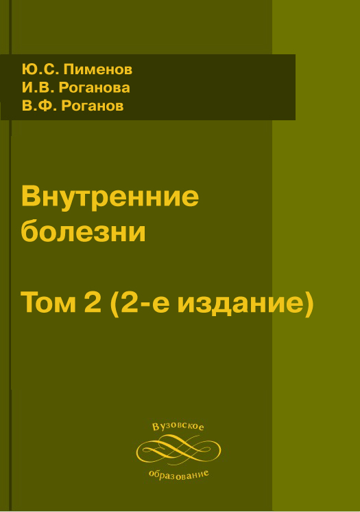 Пименов, Ю. С. Внутренние болезни. Том 2 (2-е изд.) : учебное пособие / Ю. С. Пименов, И. В. Роганова, В. Ф. Роганов ; под редакцией Ю. С. Пименов. — Самара : РЕАВИЗ, 2012. — 268 c. — Текст : электронный // Цифровой образовательный ресурс IPR SMART : [сайт]. — URL: https://www.iprbookshop.ru/18399.html (дата обращения: 09.05.2025). — Режим доступа: для авторизир. пользователей