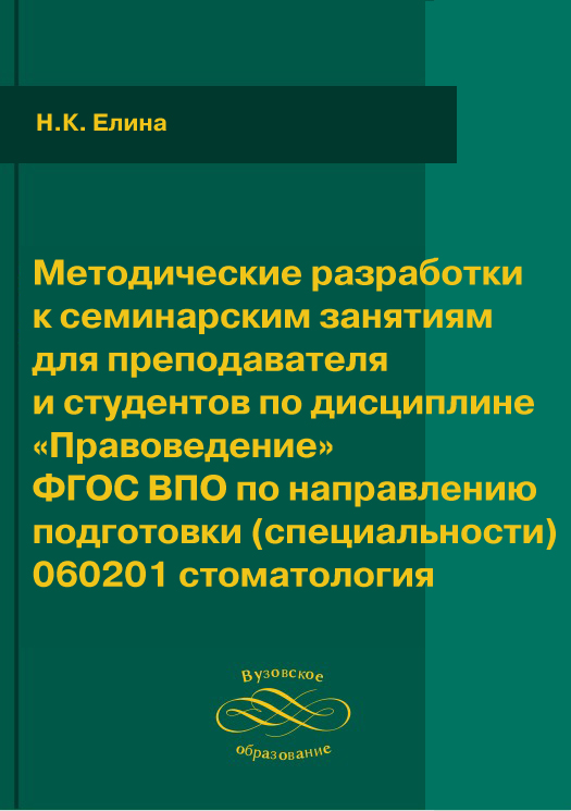 Елина, Н. К. Методические разработки к семинарским занятиям для преподавателя и студентов по дисциплине «Правоведение». ФГОС ВПО по направлению подготовки (специальности) 060201 стоматология : учебно-методическое пособие / Н. К. Елина. — Самара : РЕАВИЗ, 2011. — 120 c. — Текст : электронный // Цифровой образовательный ресурс IPR SMART : [сайт]. — URL: https://www.iprbookshop.ru/18412.html (дата обращения: 26.11.2024). — Режим доступа: для авторизир. пользователей