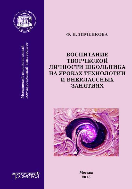 Зименкова, Ф. Н. Воспитание творческой личности школьника на уроках технологии и внеклассных занятиях : монография / Ф. Н. Зименкова. — Москва : Прометей, 2013. — 94 c. — ISBN 978-5-7042-2399-3. — Текст : электронный // Цифровой образовательный ресурс IPR SMART : [сайт]. — URL: https://www.iprbookshop.ru/18559.html (дата обращения: 20.05.2025). — Режим доступа: для авторизир. пользователей
