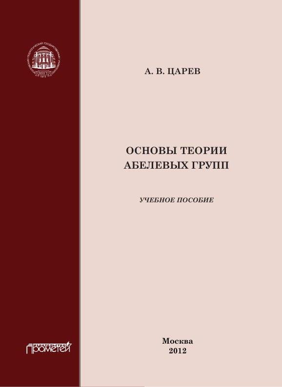 Царев, А. В. Основы теории абелевых групп : учебное пособие / А. В. Царев. — Москва : Прометей, 2012. — 66 c. — ISBN 978-5-7042-2317-7. — Текст : электронный // Цифровой образовательный ресурс IPR SMART : [сайт]. — URL: https://www.iprbookshop.ru/18597.html (дата обращения: 17.12.2024). — Режим доступа: для авторизир. пользователей