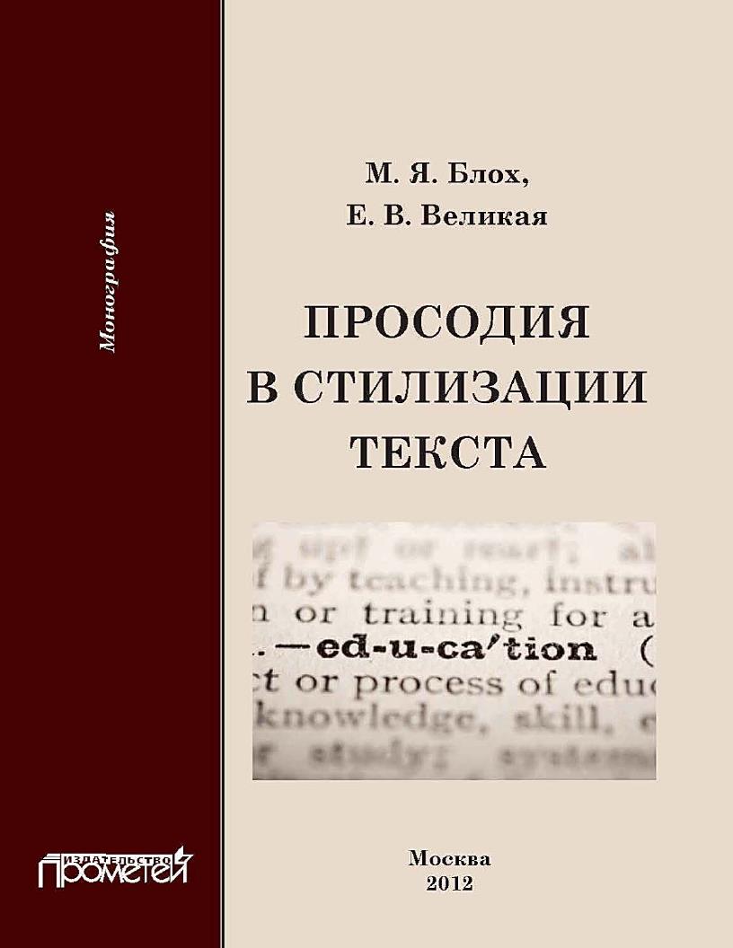 Блох, М. Я. Просодия в стилизации текста : монография / М. Я. Блох, Е. В. Великая. — Москва : Прометей, 2012. — 148 c. — ISBN 978-5-7042-2293-4. — Текст : электронный // Цифровой образовательный ресурс IPR SMART : [сайт]. — URL: https://www.iprbookshop.ru/18607.html (дата обращения: 13.04.2025). — Режим доступа: для авторизир. пользователей