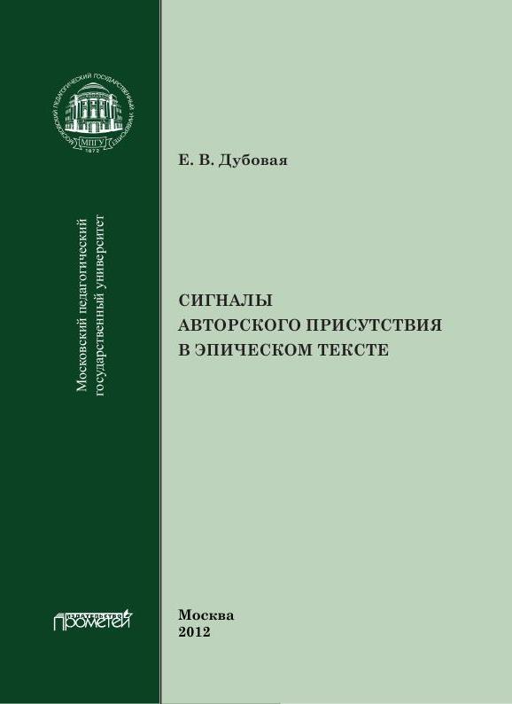 Дубовая, Е. В. Сигналы авторского присутствия в эпическом тексте / Е. В. Дубовая. — Москва : Прометей, 2012. — 54 c. — ISBN 978-5-4263-0112-2. — Текст : электронный // Цифровой образовательный ресурс IPR SMART : [сайт]. — URL: https://www.iprbookshop.ru/18617.html (дата обращения: 12.03.2025). — Режим доступа: для авторизир. пользователей