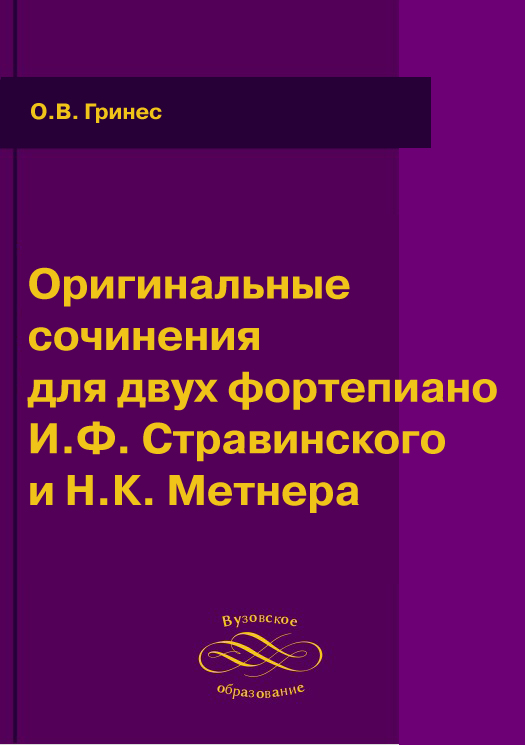 Гринес, О. В. Оригинальные сочинения для двух фортепиано И.Ф. Стравинского и Н.К. Метнера : учебно-методическое пособие / О. В. Гринес. — Нижний Новгород : Нижегородская государственная консерватория (академия) им. М.И. Глинки, 2012. — 84 c. — Текст : электронный // Цифровой образовательный ресурс IPR SMART : [сайт]. — URL: https://www.iprbookshop.ru/18675.html (дата обращения: 01.10.2024). — Режим доступа: для авторизир. пользователей
