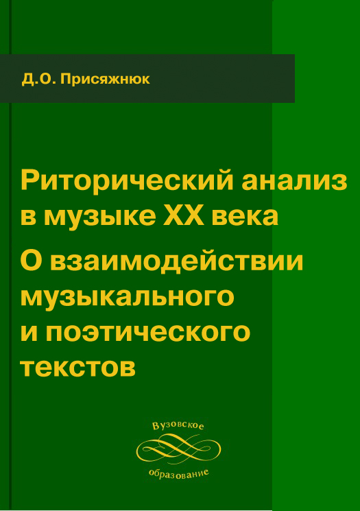 Присяжнюк, Д. О. Риторический анализ в музыке ХХ века. О взаимодействии музыкального и поэтического текстов : учебное пособие / Д. О. Присяжнюк. — Нижний Новгород : Нижегородская государственная консерватория (академия) им. М.И. Глинки, 2012. — 64 c. — Текст : электронный // Цифровой образовательный ресурс IPR SMART : [сайт]. — URL: https://www.iprbookshop.ru/18681.html (дата обращения: 27.04.2025). — Режим доступа: для авторизир. пользователей