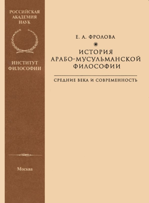 Фролова Е.А. История арабо-мусульманской философии. Средние века и современность : учебное пособие / Фролова Е.А.. — Москва : Институт философии РАН, 2006. — 199 c. — ISBN 5-9540-0057-3. — Текст : электронный // Цифровой образовательный ресурс IPR SMART : [сайт]. — URL: https://www.iprbookshop.ru/18716.html (дата обращения: 14.12.2025). — Режим доступа: для авторизир. пользователей