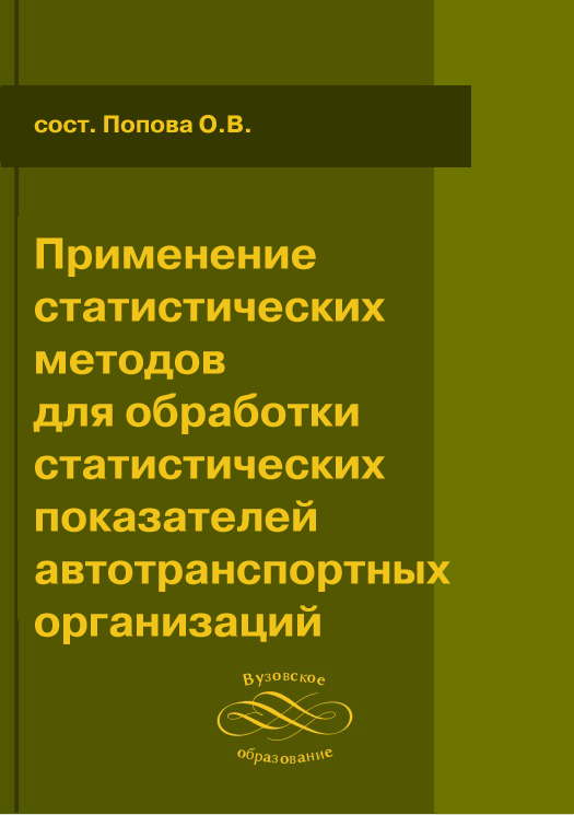 Применение статистических методов для обработки статистических показателей автотранспортных организаций : методические указания / составители О. В. Попова. — Санкт-Петербург : Санкт-Петербургский государственный архитектурно-строительный университет, ЭБС АСВ, 2013. — 23 c. — Текст : электронный // Цифровой образовательный ресурс IPR SMART : [сайт]. — URL: https://www.iprbookshop.ru/19030.html (дата обращения: 18.03.2025). — Режим доступа: для авторизир. пользователей
