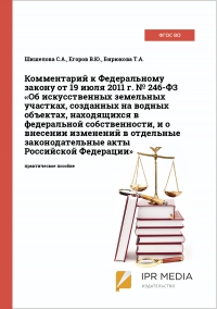Шишелова, С. А. Комментарий к Федеральному закону от 19 июля 2011 г. № 246-ФЗ «Об искусственных земельных участках, созданных на водных объектах, находящихся в федеральной собственности, и о внесении изменений в отдельные законодательные акты Российской Федерации» / С. А. Шишелова, В. Ю. Егоров, Т. А. Бирюкова ; под редакцией С. Ю. Королёв. — Саратов : Ай Пи Эр Медиа, 2012. — 160 c. — Текст : электронный // Цифровой образовательный ресурс IPR SMART : [сайт]. — URL: https://www.iprbookshop.ru/19231.html (дата обращения: 23.05.2025). — Режим доступа: для авторизир. пользователей