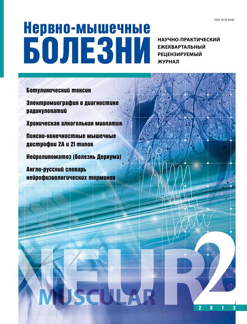 «Нервно-мышечные болезни» - ежеквартальный цветной научно-практический рецензируемый журнал. Основан в 2011 г. Официальное издание Региональной общественной организации «Общество специалистов по нервно-мышечным болезням» (ОСНМБ). Целевая читательская аудитория: неврологи, клинические нейрофизиологи, нейроиммунологи, генетики, реабилитологи, нейрохирурги, ревматологи, морфологи, педиатры. Контент: Информация о современных методах диагностики и лечения нервно-мышечных заболеваний, а также другие актуальные вопросы неврологии. Лекции, обзоры, дискуссионные статьи, результаты оригинальных исследований, случаи из практики и рекомендации по использованию современных алгоритмов диагностики и лечения, опыт использования лекарственных средств, отчеты о заметных мероприятиях в области нервно-мышечных заболеваний и общей неврологии, а также страницы истории.