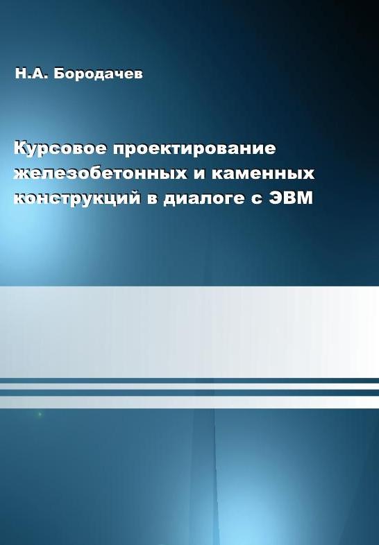 Бородачев, Н. А. Курсовое проектирование железобетонных и каменных конструкций в диалоге с ЭВМ : учебное пособие / Н. А. Бородачев. — Самара : Самарский государственный архитектурно-строительный университет, ЭБС АСВ, 2012. — 304 c. — ISBN 978-5-9585-0474-9. — Текст : электронный // Цифровой образовательный ресурс IPR SMART : [сайт]. — URL: https://www.iprbookshop.ru/20474.html (дата обращения: 15.07.2025). — Режим доступа: для авторизир. пользователей