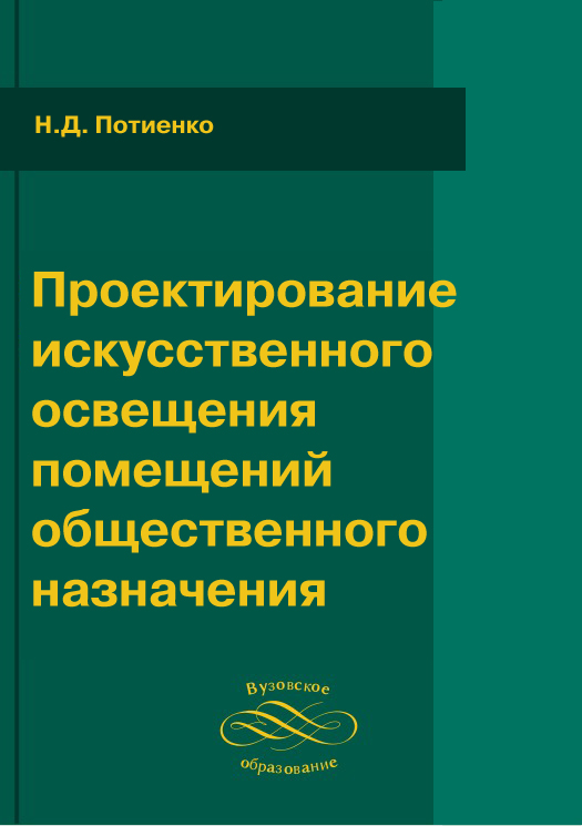Потиенко, Н. Д. Проектирование искусственного освещения помещений общественного назначения : учебное пособие / Н. Д. Потиенко. — Самара : Самарский государственный архитектурно-строительный университет, ЭБС АСВ, 2013. — 196 c. — ISBN 978-5-9585-0489-3. — Текст : электронный // Цифровой образовательный ресурс IPR SMART : [сайт]. — URL: https://www.iprbookshop.ru/20503.html (дата обращения: 04.07.2025). — Режим доступа: для авторизир. пользователей