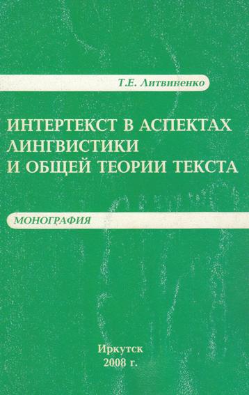 Литвиненко Т.Е. Интертекст в аспектах лингвистики и общей теории текста : монография / Литвиненко Т.Е.. — Иркутск : Иркутский государственный лингвистический университет, 2008. — 308 c. — ISBN 978-5-88267-264-4. — Текст : электронный // Цифровой образовательный ресурс IPR SMART : [сайт]. — URL: https://www.iprbookshop.ru/21082.html (дата обращения: 05.12.2025). — Режим доступа: для авторизир. пользователей
