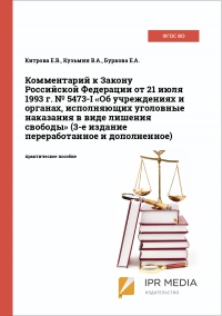 Китрова, Е. В. Комментарий к Закону Российской Федерации от 21 июля 1993 г. № 5473-I «Об учреждениях и органах, исполняющих уголовные наказания в виде лишения свободы» (3-е издание переработанное и дополненное) / Е. В. Китрова, В. А. Кузьмин, Е. А. Буркова ; под редакцией Н. С. Манова. — Саратов : Ай Пи Эр Медиа, 2013. — 216 c. — Текст : электронный // Цифровой образовательный ресурс IPR SMART : [сайт]. — URL: https://www.iprbookshop.ru/21176.html (дата обращения: 17.01.2025). — Режим доступа: для авторизир. пользователей