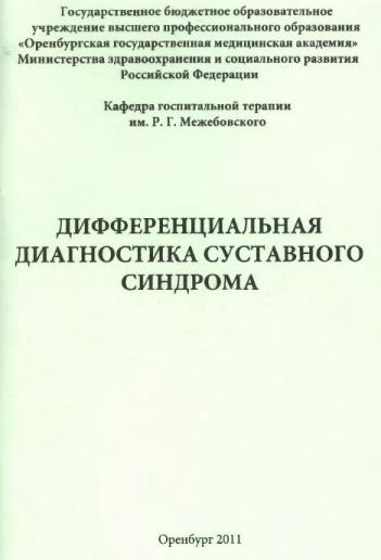 Дифференциальная диагностика суставного синдрома. Учебное пособие