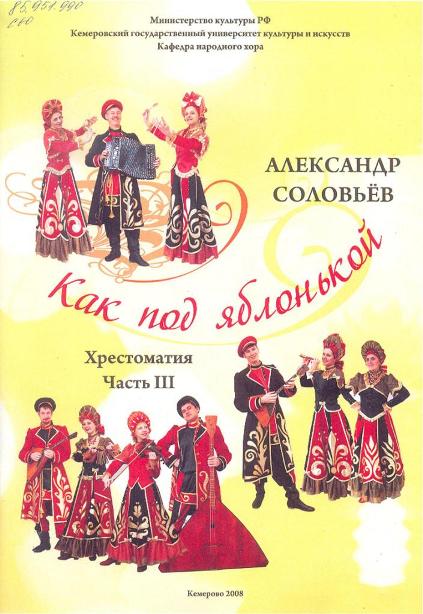 Соловьёв А.В. Как под яблонькой. Часть III : хрестоматия учебно-педагогического репертуара по специальности 071301 (053000) «Народное художественное творчество», специализаций «Народный хор», «Оркестр народных инструментов»: партитуры для ансамбля народных инструментов / Соловьёв А.В.. — Кемерово : Кемеровский государственный институт культуры, 2008. — 81 c. — ISBN 978-5-8154-0157-0. — Текст : электронный // Цифровой образовательный ресурс IPR SMART : [сайт]. — URL: https://www.iprbookshop.ru/21992.html (дата обращения: 19.12.2025). — Режим доступа: для авторизир. пользователей