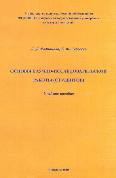 Родионова Д.Д. Основы научно-исследовательской работы (студентов) : учебное пособие для студентов укрупненной группы специальностей «Культура и искусство» / Родионова Д.Д., Сергеева Е.Ф.. — Кемерово : Кемеровский государственный институт культуры, 2010. — 181 c. — Текст : электронный // Цифровой образовательный ресурс IPR SMART : [сайт]. — URL: https://www.iprbookshop.ru/22049.html (дата обращения: 05.12.2025). — Режим доступа: для авторизир. пользователей