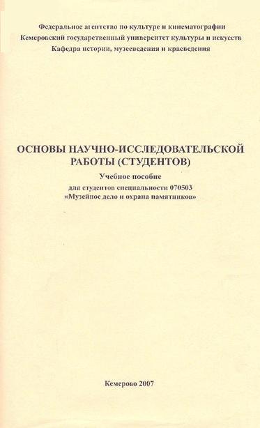 Основы научно-исследовательской работы (студентов). Учебное пособие для студентов специальности 070503 «Музейное дело и охрана памятников»