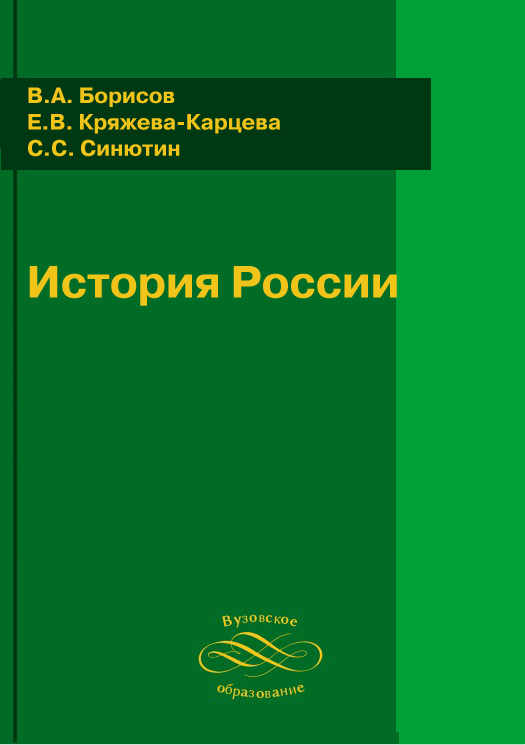 Борисов, В. А. История России : учебно-методическое пособие / В. А. Борисов, Е. В. Кряжева-Карцева, С. С. Синютин. — Москва : Российский университет дружбы народов, 2013. — 156 c. — ISBN 978-5-209-04744-5. — Текст : электронный // Цифровой образовательный ресурс IPR SMART : [сайт]. — URL: https://www.iprbookshop.ru/22179.html (дата обращения: 08.06.2025). — Режим доступа: для авторизир. пользователей
