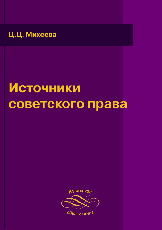 Михеева, Ц. Ц. Источники советского права : учебно-методическое пособие / Ц. Ц. Михеева. — Москва : Российский университет дружбы народов, 2013. — 132 c. — ISBN 978-5-209-04749-0. — Текст : электронный // Цифровой образовательный ресурс IPR SMART : [сайт]. — URL: https://www.iprbookshop.ru/22181.html (дата обращения: 23.05.2025). — Режим доступа: для авторизир. пользователей