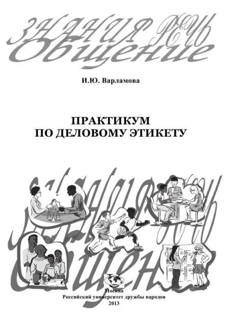 Варламова, И. Ю. Практикум по деловому этикету : учебное пособие / И. Ю. Варламова. — Москва : Российский университет дружбы народов, 2013. — 52 c. — ISBN 978-5-209-05491-7. — Текст : электронный // Цифровой образовательный ресурс IPR SMART : [сайт]. — URL: https://www.iprbookshop.ru/22212.html (дата обращения: 24.06.2025). — Режим доступа: для авторизир. пользователей