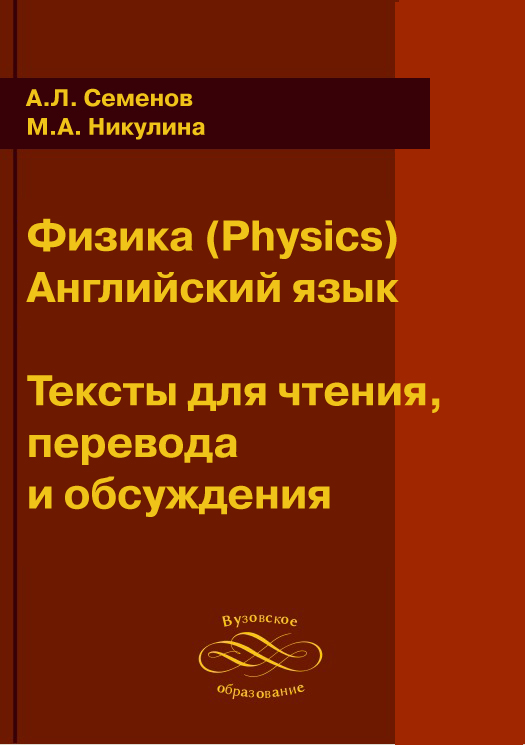 Семёнов, А. Л. Физика (Physics). Английский язык. Тексты для чтения, перевода и обсуждения : учебно-методическое пособие / А. Л. Семёнов, М. А. Никулина. — Москва : Российский университет дружбы народов, 2013. — 120 c. — ISBN 978-5-209-04745-2. — Текст : электронный // Цифровой образовательный ресурс IPR SMART : [сайт]. — URL: https://www.iprbookshop.ru/22225.html (дата обращения: 22.04.2025). — Режим доступа: для авторизир. пользователей