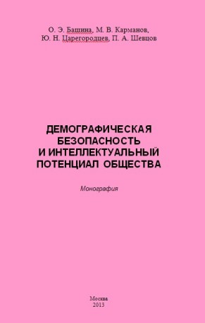 Демографическая безопасность и интеллектуальный потенциал общества : монография / О. Э. Башина, М. В. Карманов, Ю. Н. Царегородцев, П. А. Шевцов. — Москва : Московский гуманитарный университет, 2013. — 126 c. — ISBN 978-5-98079-910-6. — Текст : электронный // Цифровой образовательный ресурс IPR SMART : [сайт]. — URL: https://www.iprbookshop.ru/22456.html (дата обращения: 07.05.2025). — Режим доступа: для авторизир. пользователей