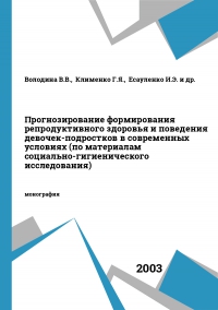 Прогнозирование формирования репродуктивного здоровья и поведения девочек-подростков в современных условиях (по материалам социально-гигиенического исследования) / В.В. Володина [и др.].. — Воронеж : Воронежский институт высоких технологий, Истоки, 2003. — 180 c. — Текст : электронный // Цифровой образовательный ресурс IPR SMART : [сайт]. — URL: https://www.iprbookshop.ru/23356.html (дата обращения: 06.12.2025). — Режим доступа: для авторизир. пользователей