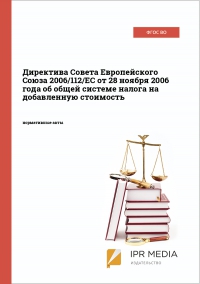 Директива Совета Европейского Союза 2006/112/EC от 28 ноября 2006 года об общей системе налога на добавленную стоимость / перевод В. А. Демидов, И. В. Артамонова. — Саратов : Ай Пи Эр Медиа, 2014. — 231 c. — Текст : электронный // Цифровой образовательный ресурс IPR SMART : [сайт]. — URL: https://www.iprbookshop.ru/23397.html (дата обращения: 08.02.2025). — Режим доступа: для авторизир. пользователей