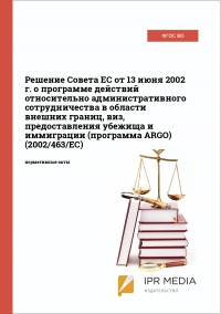 Решение Совета ЕС от 13 июня 2002 г. о программе действий относительно административного сотрудничества в области внешних границ, виз, предоставления убежища и иммиграции (программа ARGO) (2002/463/EC) / перевод И. В. Артамонова. — Саратов : Ай Пи Эр Медиа, 2014. — 12 c. — Текст : электронный // Цифровой образовательный ресурс IPR SMART : [сайт]. — URL: https://www.iprbookshop.ru/23412.html (дата обращения: 24.03.2025). — Режим доступа: для авторизир. пользователей