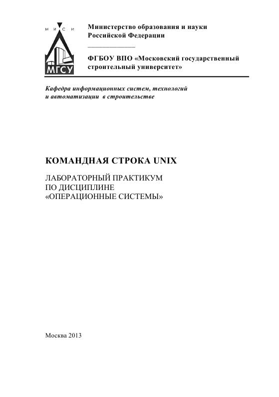 Командная строка UNIX : лабораторный практикум по дисциплине «Операционные системы» / составители Н. А. Иванов. — Москва : Московский государственный строительный университет, ЭБС АСВ, 2013. — 44 c. — Текст : электронный // Цифровой образовательный ресурс IPR SMART : [сайт]. — URL: https://www.iprbookshop.ru/23729.html (дата обращения: 04.06.2025). — Режим доступа: для авторизир. пользователей