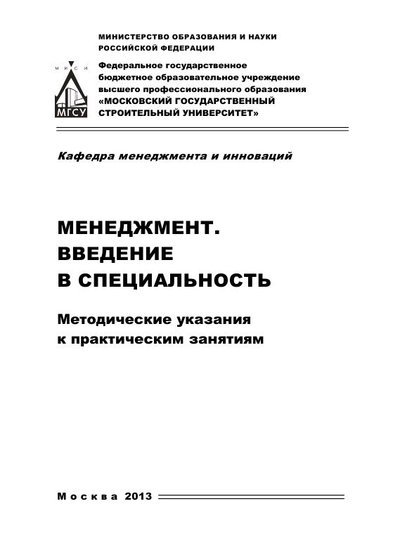 Менеджмент. Введение в специальность. Методические указания к практическим занятиям
