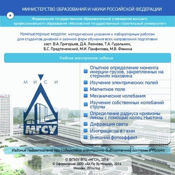 Компьютерные модели : методические указания к лабораторным работам для студентов дневной и заочной форм обучения всех направлений подготовки, реализуемых в МГСУ / составители В. А. Григорьев [и др.]. — Москва : Московский государственный строительный университет, Ай Пи Эр Медиа, ЭБС АСВ, 2014. — 49 c. — ISBN 978-5-7264-0909-2. — Текст : электронный // Цифровой образовательный ресурс IPR SMART : [сайт]. — URL: https://www.iprbookshop.ru/26147.html (дата обращения: 30.09.2024). — Режим доступа: для авторизир. пользователей