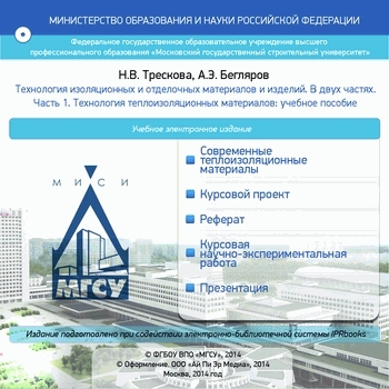 Трескова Н.В. Технология изоляционных и отделочных материалов и изделий. Часть 1. Технология теплоизоляционных материалов : учебное пособие / Трескова Н.В., Бегляров А.Э.. — Москва : Московский государственный строительный университет, Ай Пи Эр Медиа, ЭБС АСВ, 2014. — 122 c. — ISBN 978-5-7264-0921-4. — Текст : электронный // Цифровой образовательный ресурс IPR SMART : [сайт]. — URL: https://www.iprbookshop.ru/26161.html (дата обращения: 15.12.2025). — Режим доступа: для авторизир. пользователей