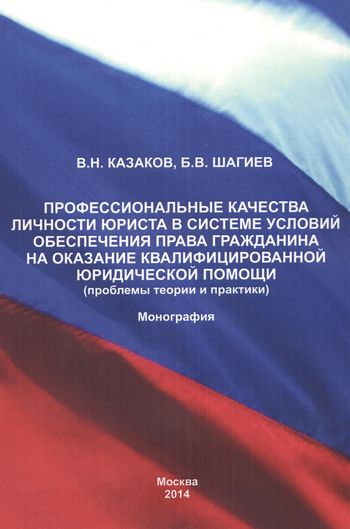 Казаков, В. Н. Профессиональные качества личности юриста в системе условий обеспечения права гражданина на оказание квалифицированной юридической помощи (проблемы теории и практики) : монография / В. Н. Казаков, Б. В. Шагиев. — Москва : Российская Академия адвокатуры и нотариата, 2014. — 151 c. — ISBN 978-5-93858-081-7. — Текст : электронный // Цифровой образовательный ресурс IPR SMART : [сайт]. — URL: https://www.iprbookshop.ru/26221.html (дата обращения: 23.03.2025). — Режим доступа: для авторизир. пользователей