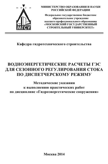 Водноэнергетические расчеты ГЭС для сезонного регулирования стока по диспетчерскому режиму. Методические указания к выполнению практических работ по дисциплине «Гидроэнергетические сооружения» для студентов, обучающихся по специальности 271101 «Строительство уникальных зданий и сооружений», профиль «Строительство гидротехнических сооружений повышенной ответственности